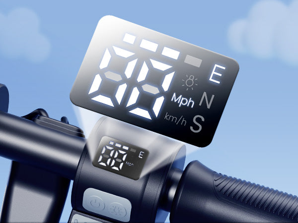 Shows you the mode, speed, and battery level.